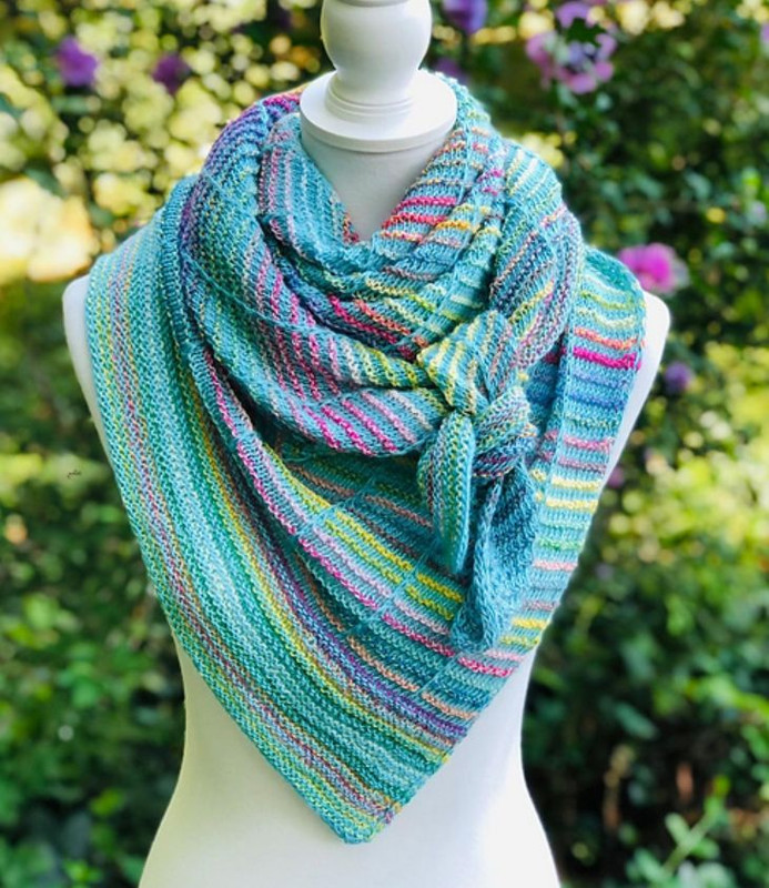 Эта треугольная шаль вяжется поперек от маленького угла к Кайме. Полосы из снятых петель украшают полотно прямыми линиями. Одна однотонная пряжа в сочетании с другой секционной пряжей создает захватывающий проект, который легко вязать и интересно наблюдать, как раскрываются цвета. Этот узор отличный проект шали для начинающих с простыми петлями. Вы можете остановиться раньше для шали меньшего размера или связать больше повторений для большего размера шали. (файл не содержит видео).